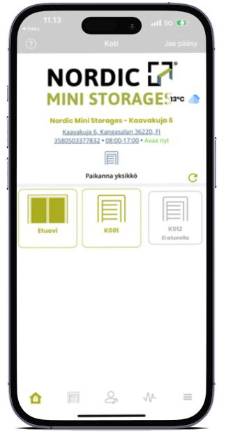 - Saat pääsykoodin tekstiviestillä, jolla pääset varastorakennukseen ja yksikköösi.